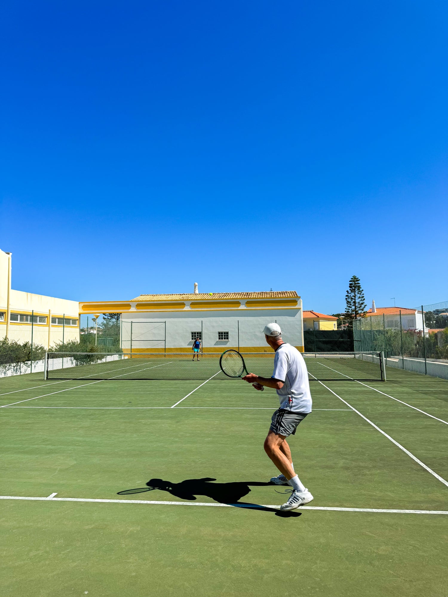 Para uma partida de ténis, passe na receção para levantar raquetes e bolas. Aproveite o nosso campo para momentos de diversão e competição.