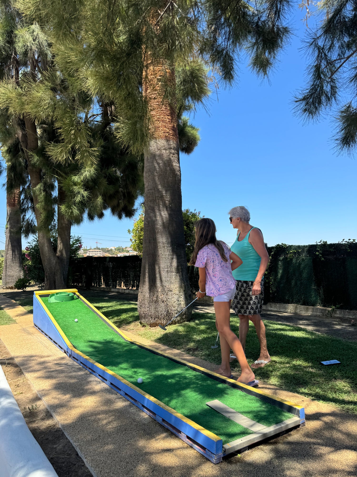 Para jogar minigolfe, passe na receção para levantar os tacos e bolas. O nosso circuito de 6 buracos é perfeito para momentos de diversão com amigos e família.